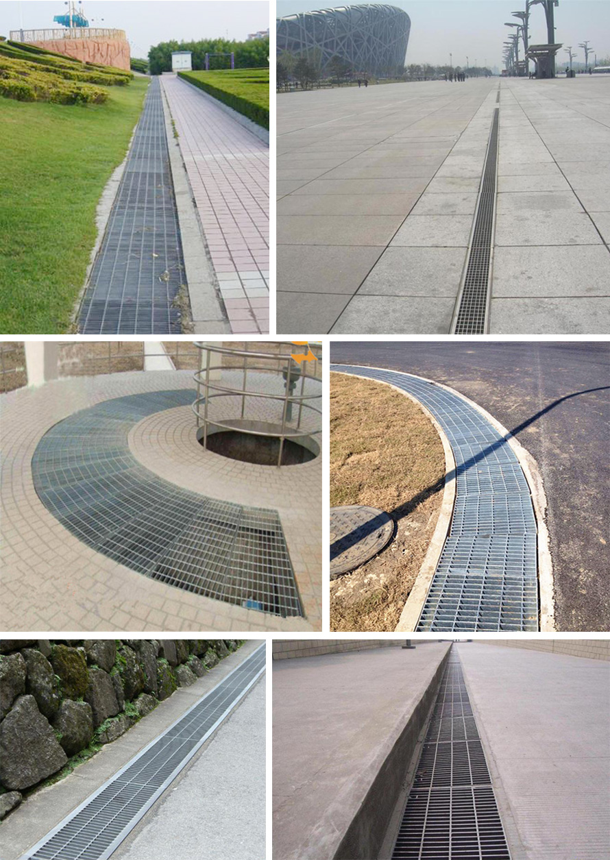 U型溝蓋:為了方便快捷的安裝,結合不同的施工要求,普通鋼格柵的覆層采用角鋼。角鋼的一側焊接在鋼格板上,另一側作為支撐邊撞擊槽邊。該溝蓋安裝簡單,溝邊無需開槽。它易于打開和清潔。